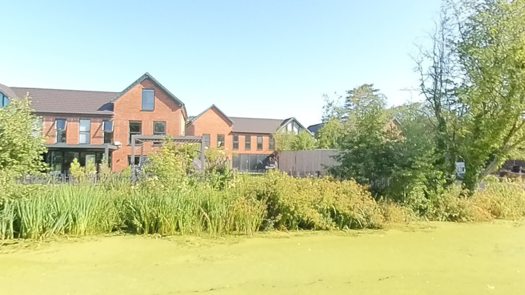 - Canal aspect: This super smart property backs onto the offside of the Lancaster Canal. It has an L-shaped garden which reduces the canal bank. Sorry, that's the best canal-direction photo the agent had, and the Streetview image below is not much better! It is the house in the middle with the wide bifolds, so there should be a view out to the canal. It looks as if a fair bit of vegetation clearance would be needed if you wanted to apply for a mooring, though.