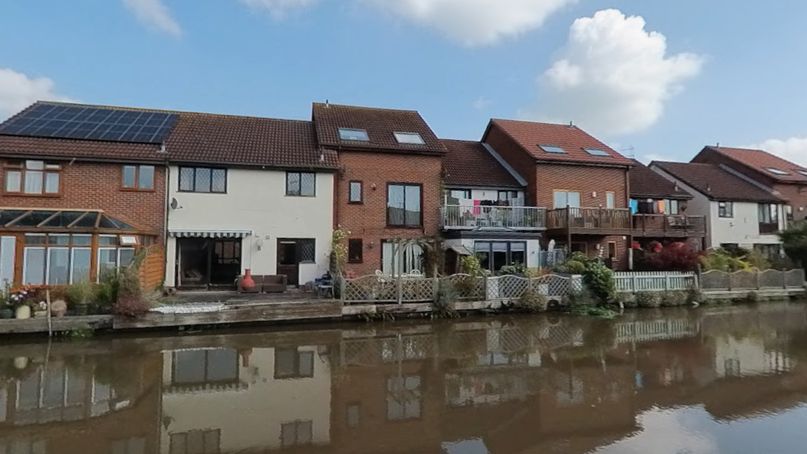 - Canal aspect: This backs onto the offside of the Shropshire Union Canal with a pleasant towpath and residential view opposite. I love the first floor Juliet balcony, and it probably wouldn't be difficult to add a full wooden balcony like next-door-but-one. I noticed that another neighbour has a kayak "parked" outside, but this is quite a narrow plot, about 17 feet, so that's about your limit!