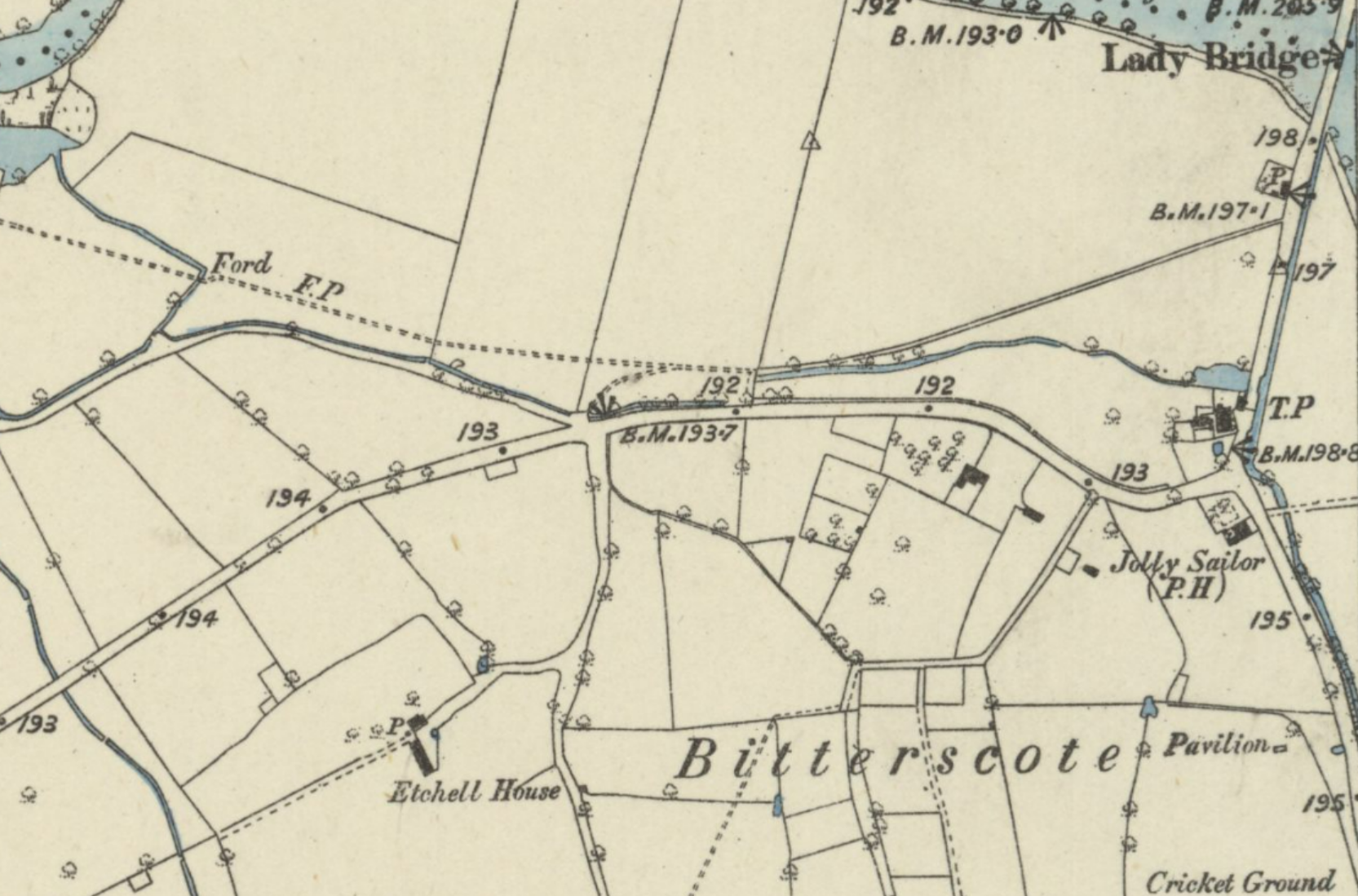 Let's begin by orienting ourselves, as the roads in this area look very different today. In the map above, Lady Bridge is a fixed landmark beloved by local residents for centuries. It was rebuilt in 1796, after floods destroyed its predecessor, and it was widened in 1840. The road running south from Lady Bridge past the Jolly Sailor Public House is Fazeley Road. It still exists but it is now a no-through road, which is blocked off to the south of this map. Etchell House would have been roughly where the Jolly Sailor roundabout is today. The road running from the centre of the map almost directly west is Dunstall Lane. It leads to Dunstall Farm, which is off the map to the west. Etchell House and Dunstall Farm were part of the Peel Estate holdings which were sold by auction in 1918-19. Sale documents are kept in the National Archives. Dunstall Farm still exists.