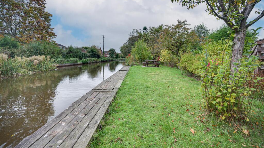 • Canal aspect: This is on the offside of the Macclesfield Canal. It has a pre-existing long-looking decked mooring which you could re-apply for, although it might need some work - the agent says, "all parties are reminded that the 'jetty' over the canal looks to be in poor condition and therefore we advise you do not step on it for safety reasons". The whole property needs a refresh, but it could be an amazing boater's home.