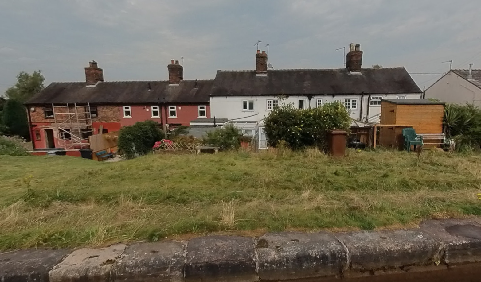 - Canal aspect: This cottage backs onto the large grassy lock side in the middle of Lock 63 on the Trent and Mersey Canal. Many owners here put seating out by the canal when the weather is good. In the Streetview image below it's the one in the middle, the furthest to the left of the white ones. There are views over the lock of ta similar row of cottages, and the golf course beyond should protect the otherwise rural outlook.