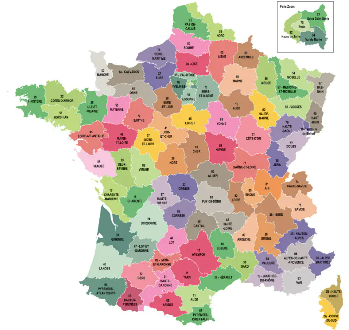 One day when I feel 'arty' I might put all of these figures onto a map for you. In the meantime here is a department map to refer to.