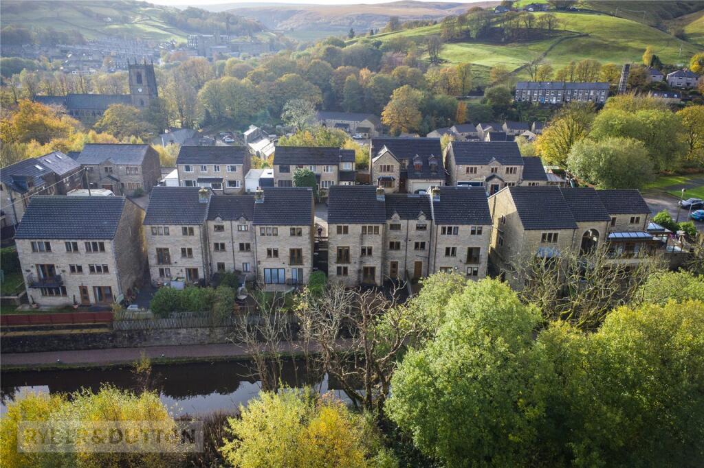 - Canal aspect: This backs onto the towpath side of the Huddersfield Narrow Canal. It is set in an elevated position with a Juliet balcony enjoying views over the canal, and a paved garden with views extending along the tree-lined, sloping bank opposite.