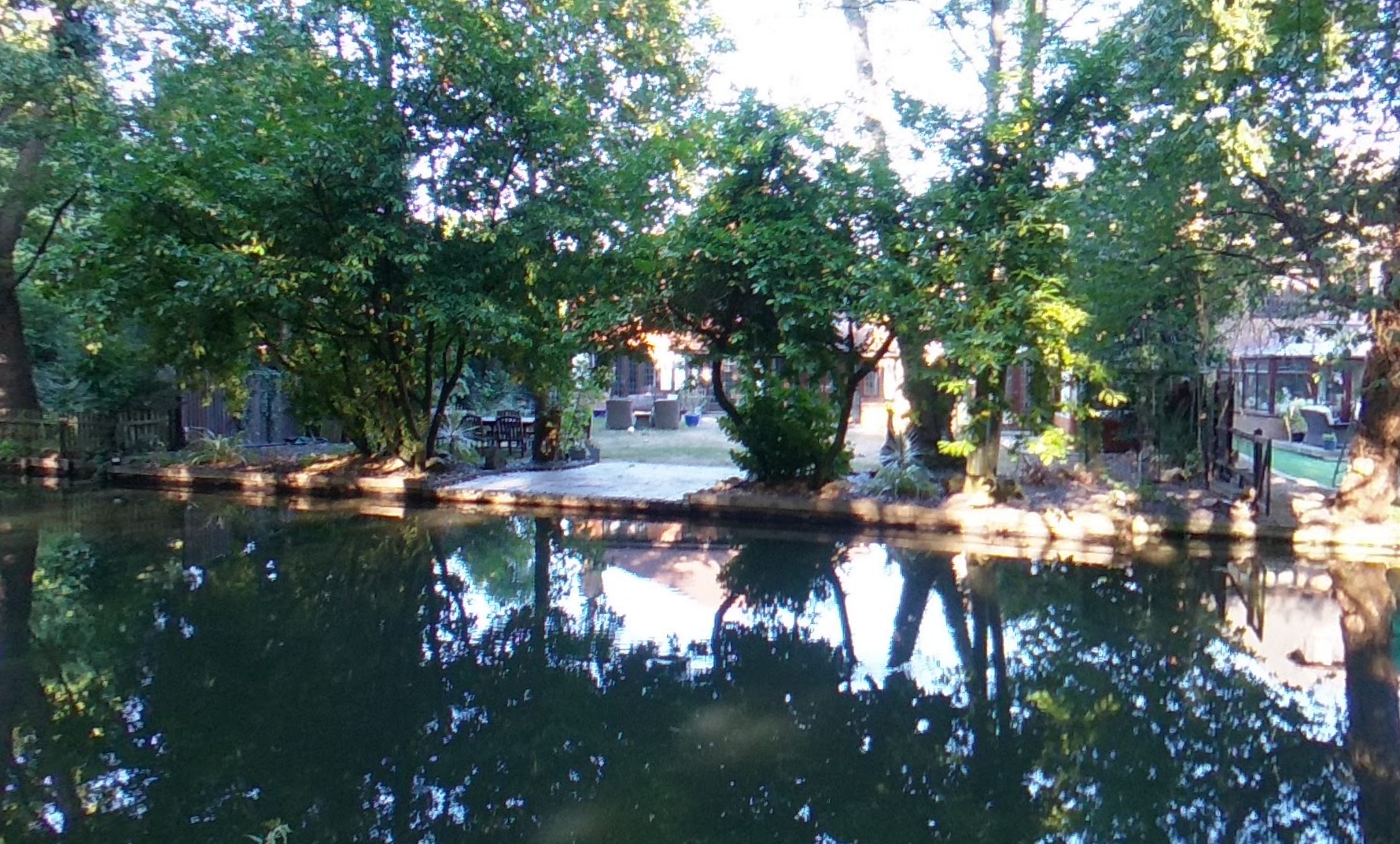 - Canal aspect: This large and elegant house backs onto the offside of the River Wey Navigation, not far from the Basingstoke Canal junction. It mooks as it this might make a good application for a long mooring. There may be some noise from the motorway, but there is a good swathe of trees to offer some protection.