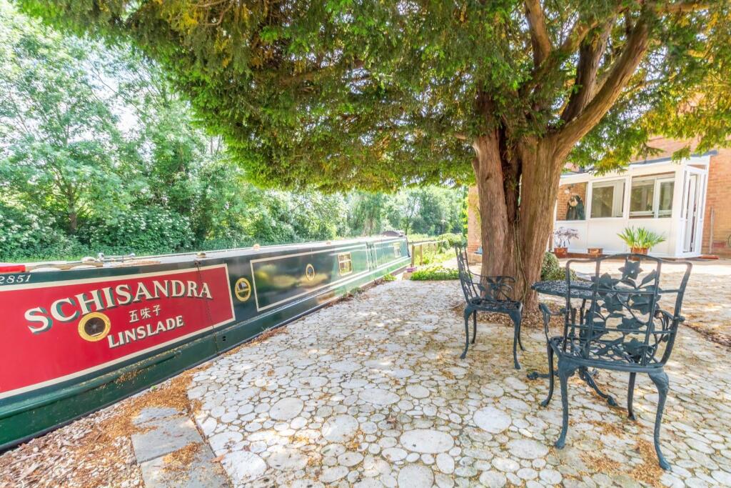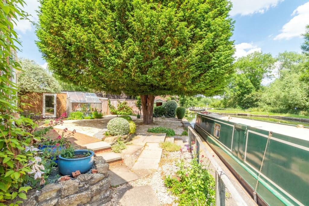 Rear - Beautiful rear garden backing onto the Grand Union canal benefiting from one permitted mooring space with space for a second (application to the Canal and River Trust) Mainly laid to lawn with a patio seating area and mature flower beds.