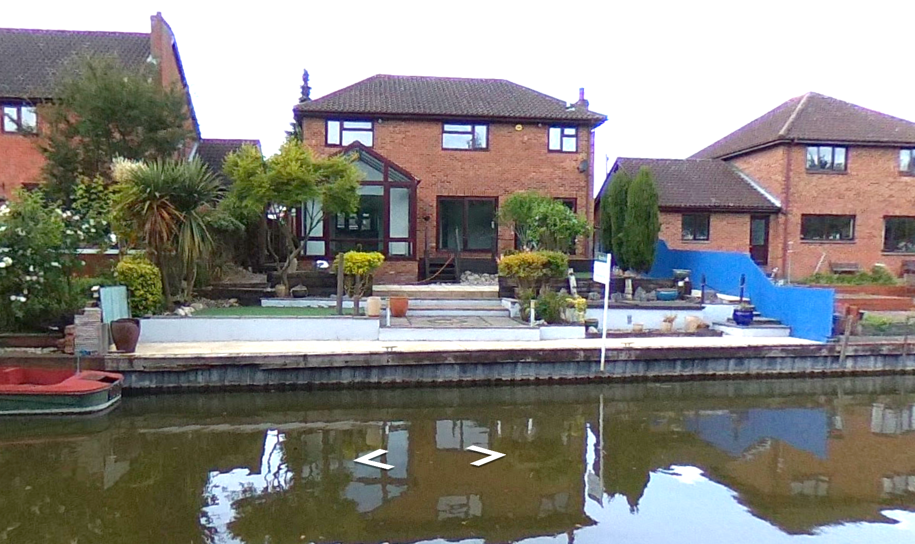 - Canal aspect: This house has an excellent conservatory and garden backing onto the offside of the Grand Union Canal. This is already set up with a 50ft concrete (I think) mooring with armco and timber edging, and I doubt boaters would face any challenges on re-application. You can see some kayaks in two of the photos. The outlook opposite is towards the tree-lined towpath, and a very thick wooded screen hiding the distribution centre beyond. I doubt this would cause any problems.