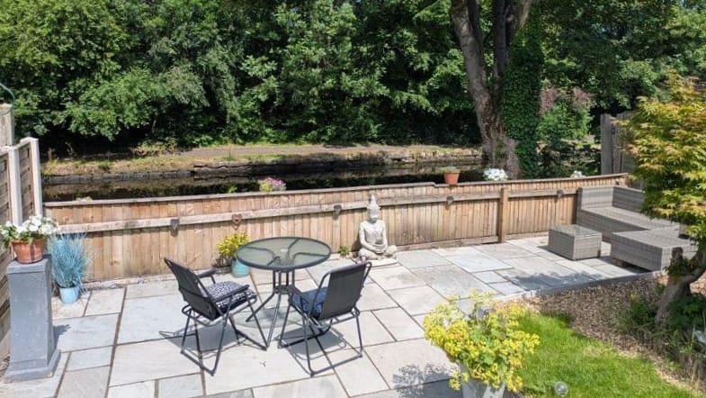 - Canal aspect: The garden backs directly onto the Rochdale Canal, and as the house is elevated, it has great views down over the canal. The towpath opposite is lined with mature trees. There is a fantastic paved garden area at the bottom of the garden, where you can relax and enjoy the view. The CRT have cordoned off the bank here over quite a long stretch (a possible roots or erosion issue?) so I'm going to assume that mooring or paddle launching would not be possible.