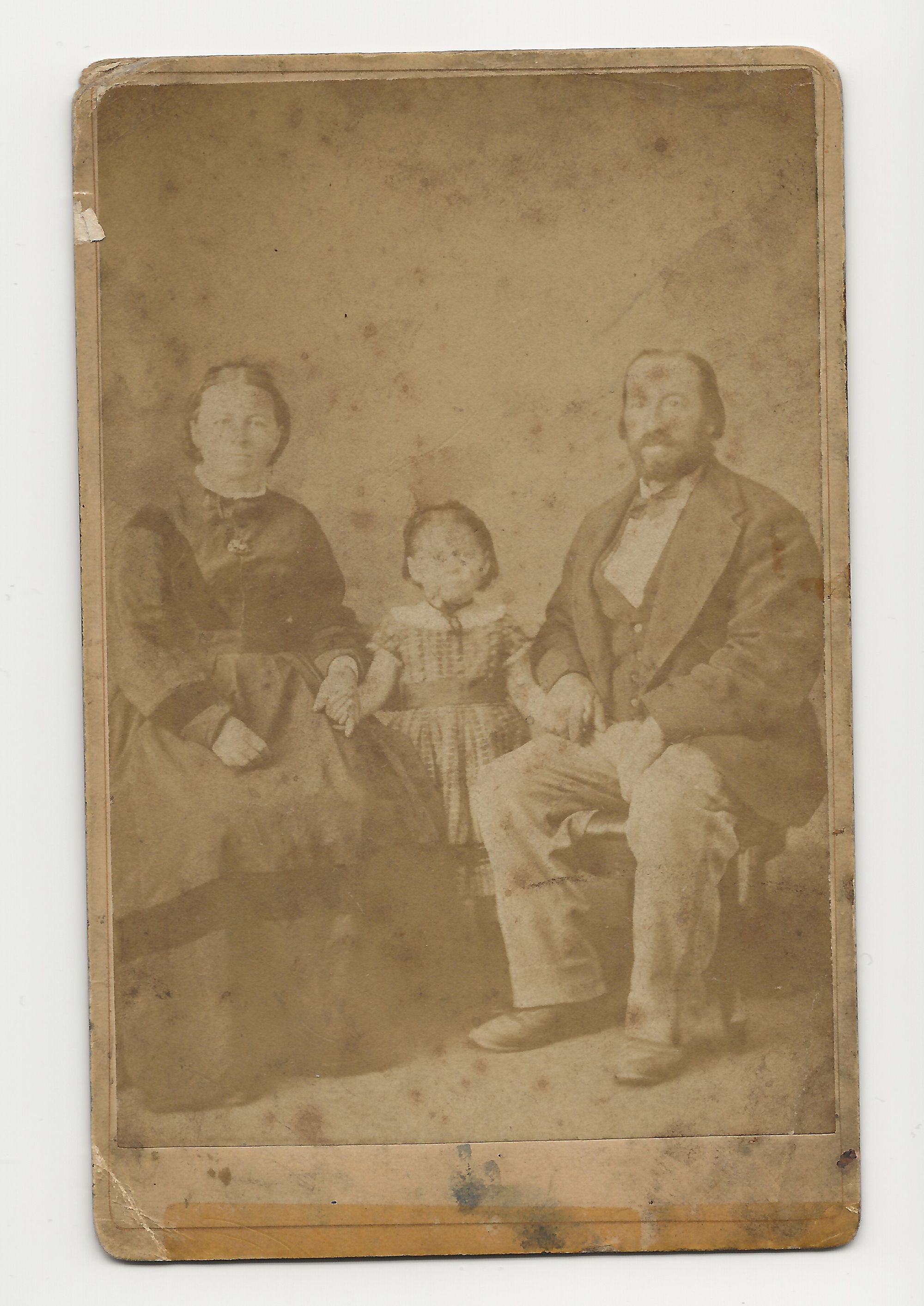 This is the oldest original photograph in my family collection, and for years it was a mystery who it was. It was taken in about 1873. Eventually I worked out that it shows my 3rd great-aunt, Mary Swan nee Godman, her husband Philip Swan (1825-1897), and their daughter Lillie.