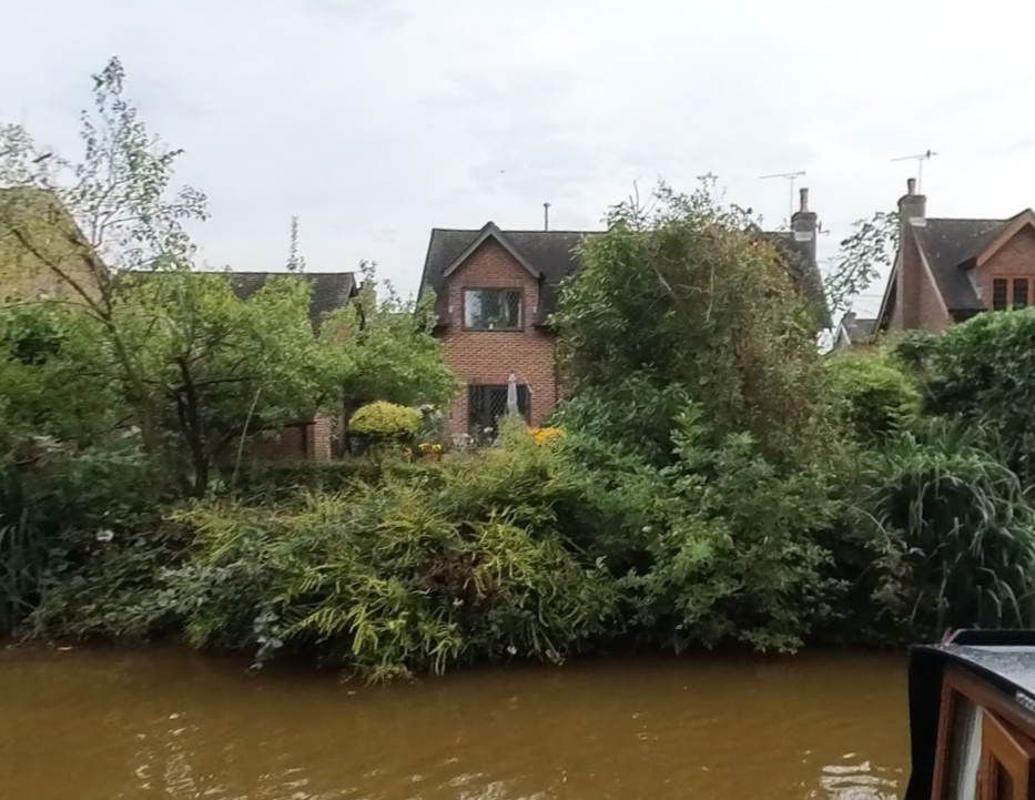 - Canal aspect: This backs onto the offside of the Trent and Mersey Canal and there is good potential for a long mooring, although considerable vegetation and engineering works would be required. I am curious about the land registry plan which shows a strange angle to the plot. This could be related to the fact that it has previously held planning permission for a separate dwelling. The exact title would need checking, particularly as this could affect mooring length. Here is the rear view on Streetview. Several neighbours already have canalside decks.
