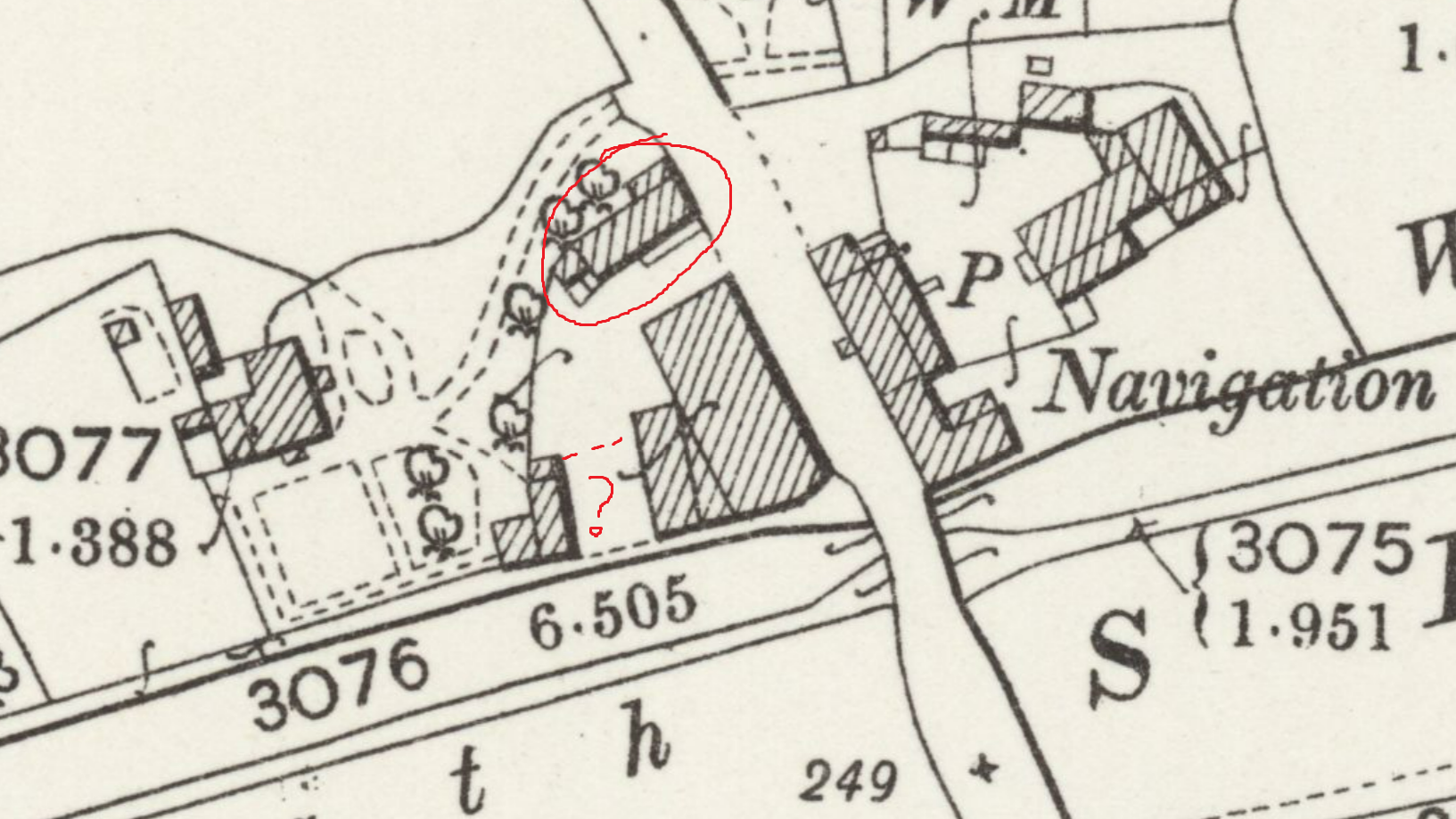 - Canal aspect: The house is on the offside of the Montgomery Canal, behind the CRT boaters' facilities. The garden is to the front and left of the house. The area to the left is lawned, and at its boundary, a five bar gate opens out to to a grassed canalside area. I can't be absolutely sure, but it looks like there is potential to keep this boundary of the garden private or to open it out to encompass the views. My first question to the agent would be who owns that area, and does the cottage have legal rights of access across it? The map below was published in 1901 and with the red markings I have tried to guestimate how it relates to the present.