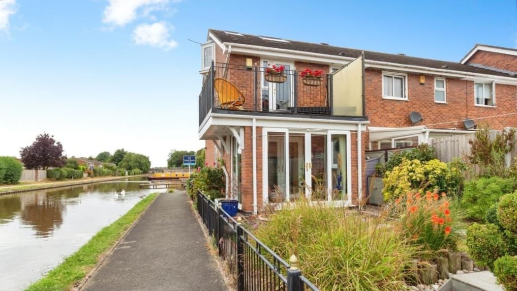 - Canal aspect: This house is on the offside of the Shropshire Union Canal just to the right of the Ladybird Moorings (formerly Toms Moorings). These pontoons are managed by the CRT as long term leisure moorings. You could bid for a mooring when the next vacancy comes up! This particular house is further away from the Market Drayton bypass, so it should be a bit quieter, and I love the long back garden and the first floor terrace overlooking the canal. A fantastic looking house!