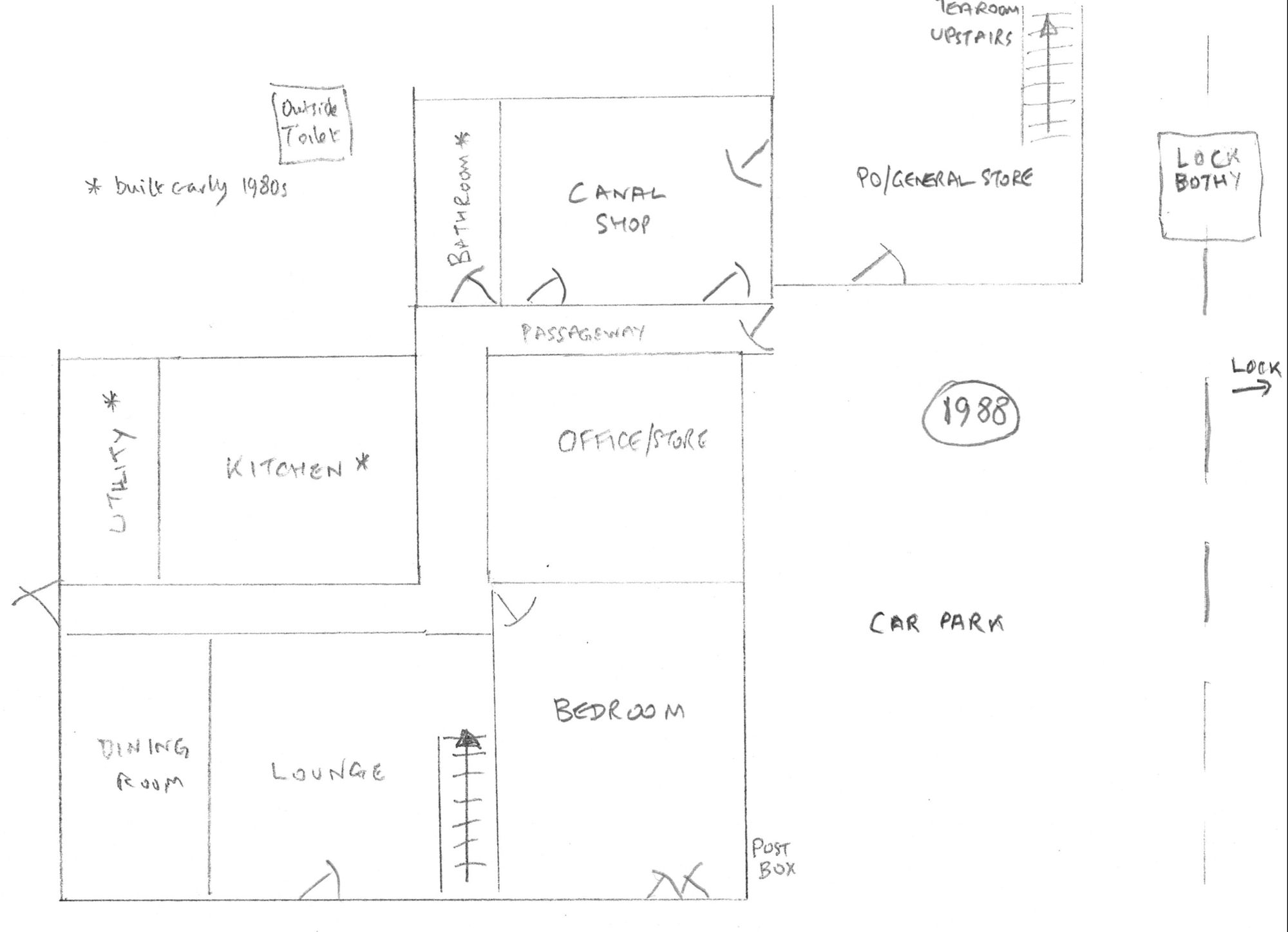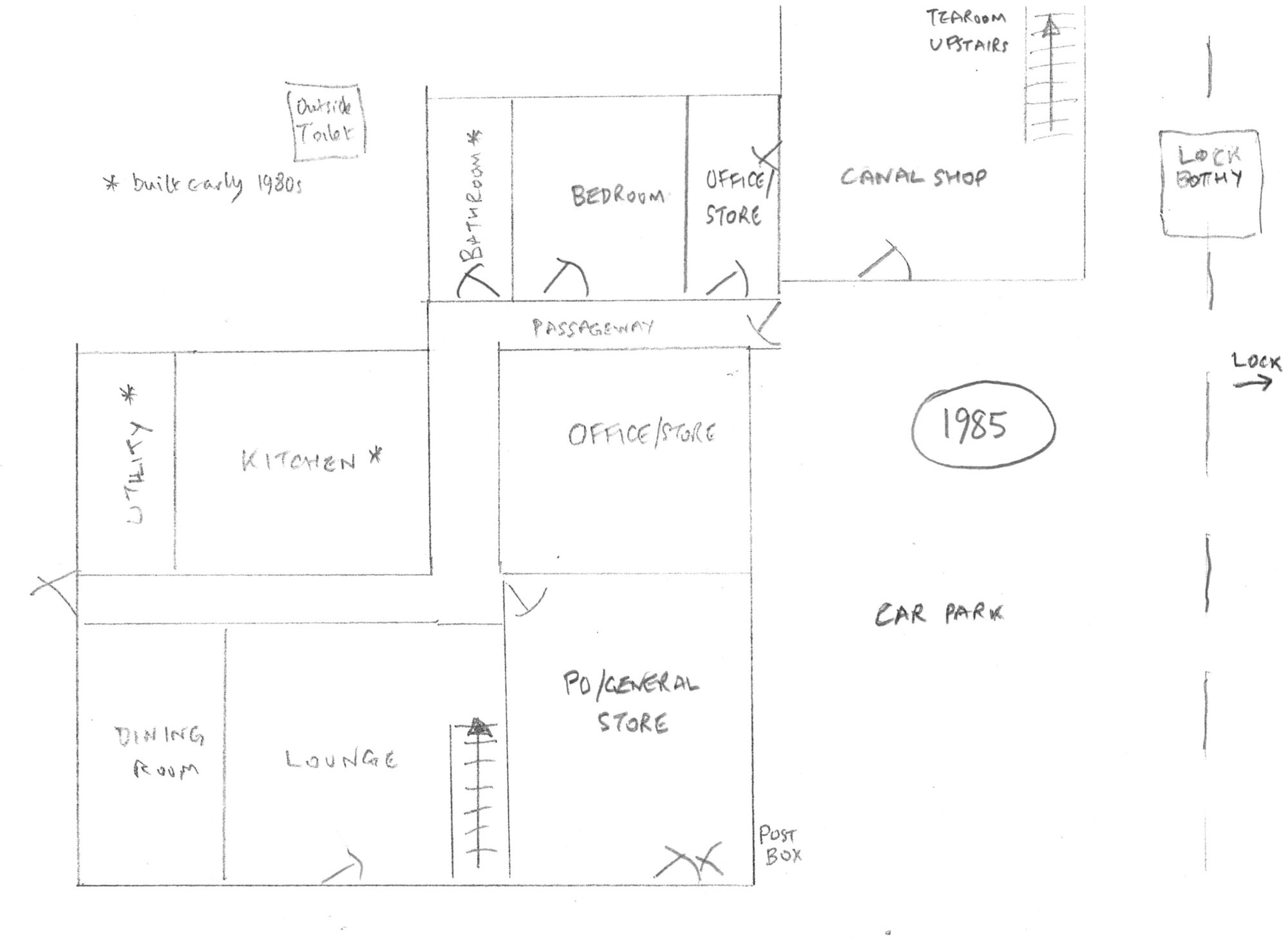 Peter and Christine Silvester bought the post office from Terry and Val Shutt in late May 1985. The sketch plan below shows the layout when they bought the property.