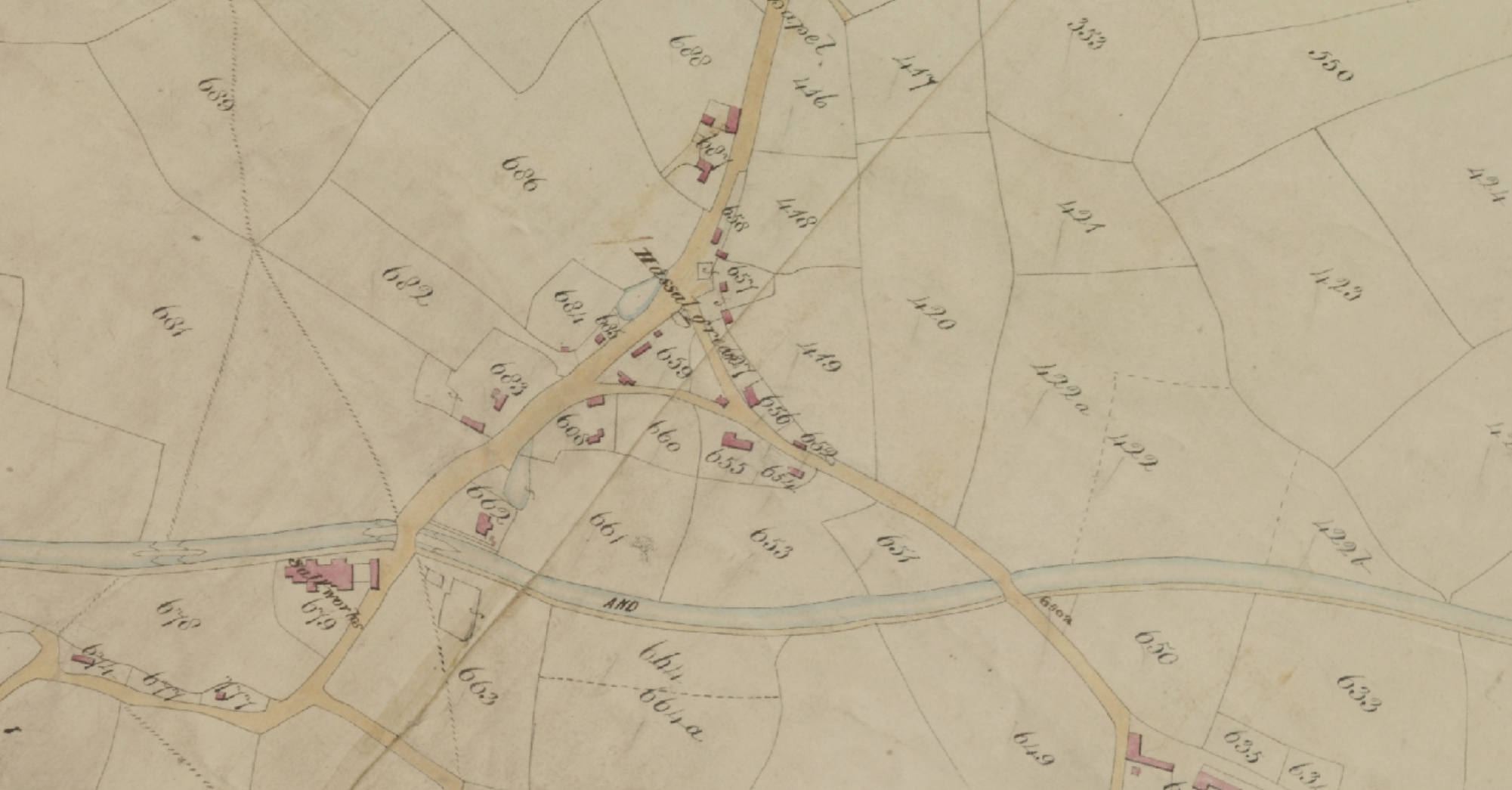 To the north east of Lock 57 Cottage beyond the pond is Plot 608, the Red Lion Public House. Again, the owner is George Wilbraham. The occupier is William Smallwood. This plot is 0 Acres, 1 Rood, 33 Perches. The former Red Lion Grade 2 listing claimed that it was built in the 17th Century. It was later renamed the Romping Donkey. It eventually closed and has been replaced by housing.