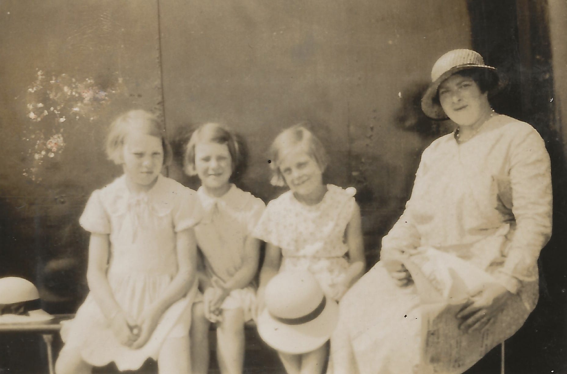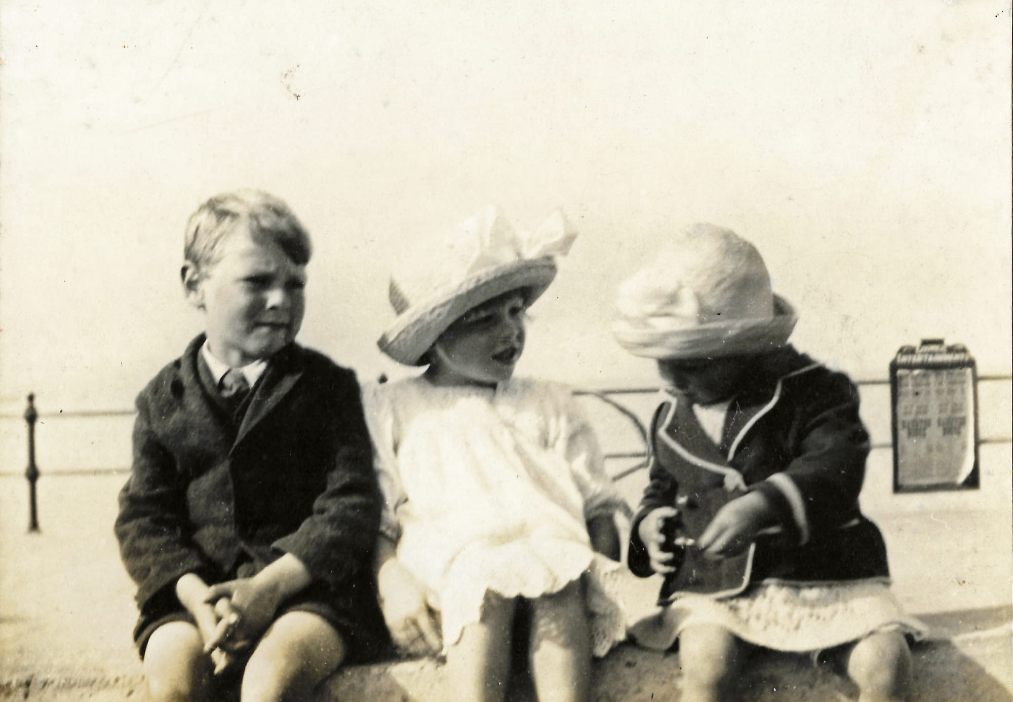 One day Annie took the four young children to the beach. My mother was wearing a white broderie Anglaise dress, a bright red blazer with white piping around the edge, and a white straw hat with a bunch of white ribbons at the front and around the crown. She had a little wooden boat on a string and she walked out on the jetty that pleasure trippers used to prevent their feet getting wet when boarding a boat. It wasn’t far out to sea but the water here was deep enough to drown a child. There were other children playing on the jetty with their own toy boats, so the four children joined in alongside them. Annie sat on the beach with Margaret Mellor in her pram, anxiously watching the children playing. There was no safety barrier on the jetty. My mother dangled her little boat on the end of its string until it reached the water. It floated and bobbed about and was gradually swept by the current under the jetty. The family never knew whether she leaned forward too far, or whether a young boy who passed by accidentally knocked her into the sea.