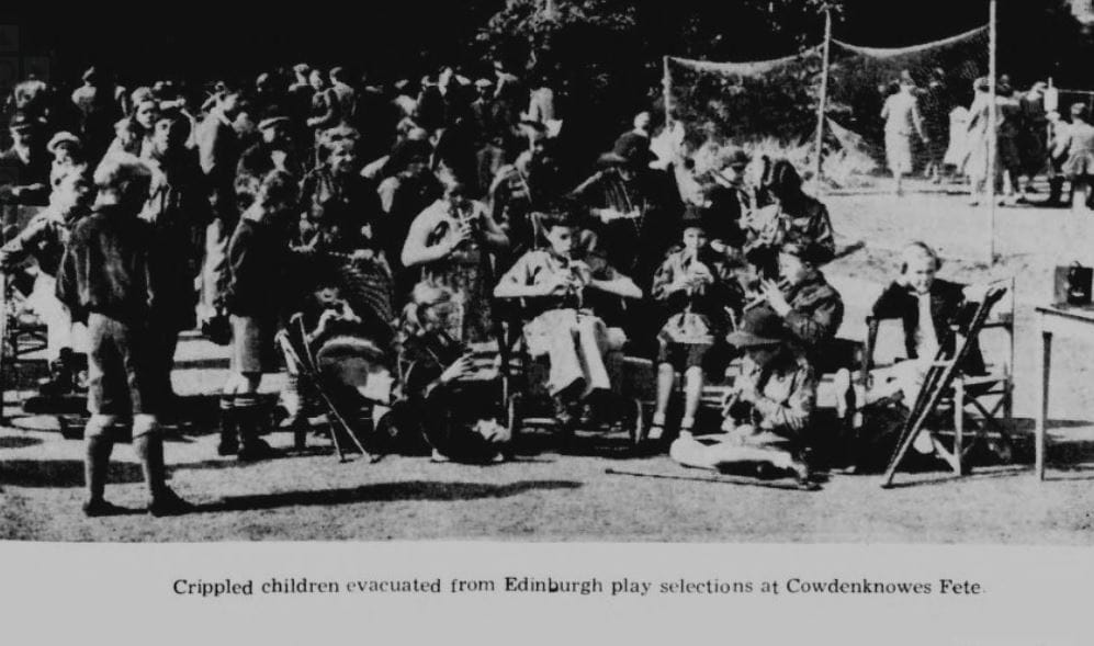 A splendid effort of help to raise funds for the purpose of purchasing mobile canteen for the Girl Guides’ Headquarters in Edinburgh was made by the Cripple Guides at Cowdenknowes, when they gave an excellent entertainment. Owing to the lack of accommodation, only a limited number of friends could invited. However, those who were fortunate to be present were treated to delightful programme of songs, sketches and recitations, by the cripple children and the staff.