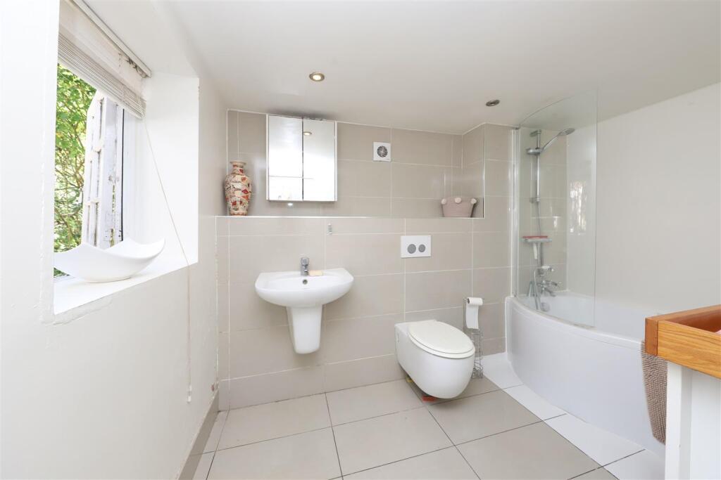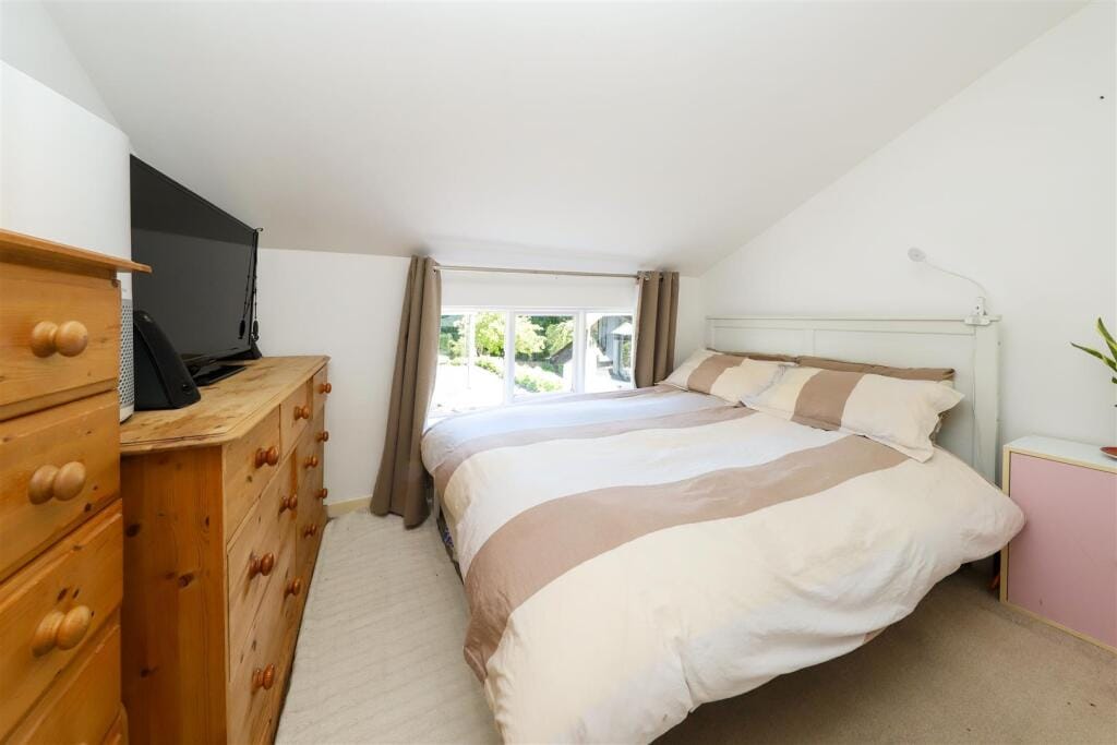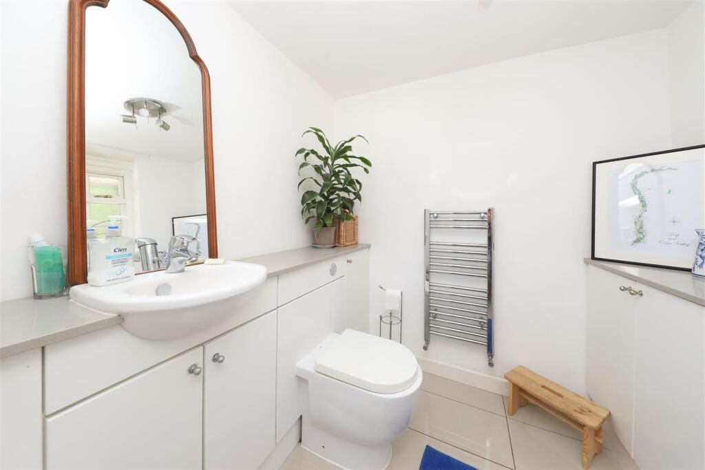 Off the dining room there are doors to each of the three bedrooms. The largest of these has a view of the lock, and the other two have views over the garden to the rear.