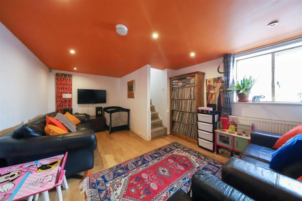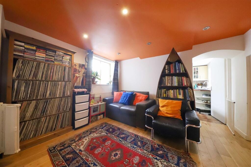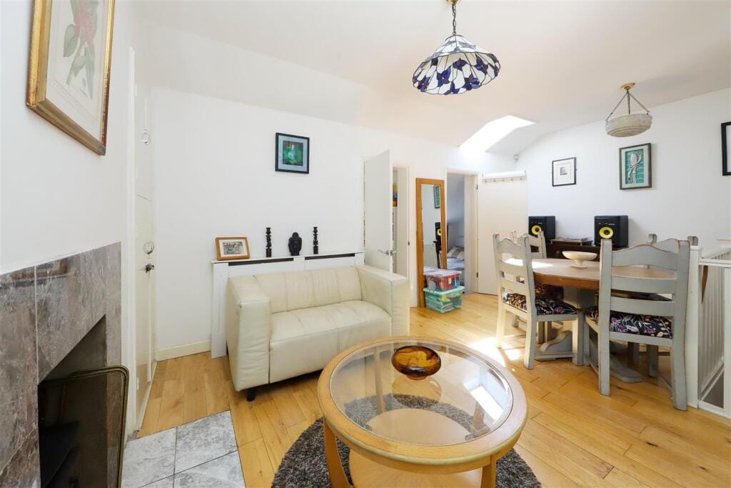 A door from the sitting room leads to a large, dual-aspect kitchen with a door to the garden. There is/was a fireplace in the kitchen (not pictured). A second door from the sitting room leads to a well-fitted bathroom to the rear.