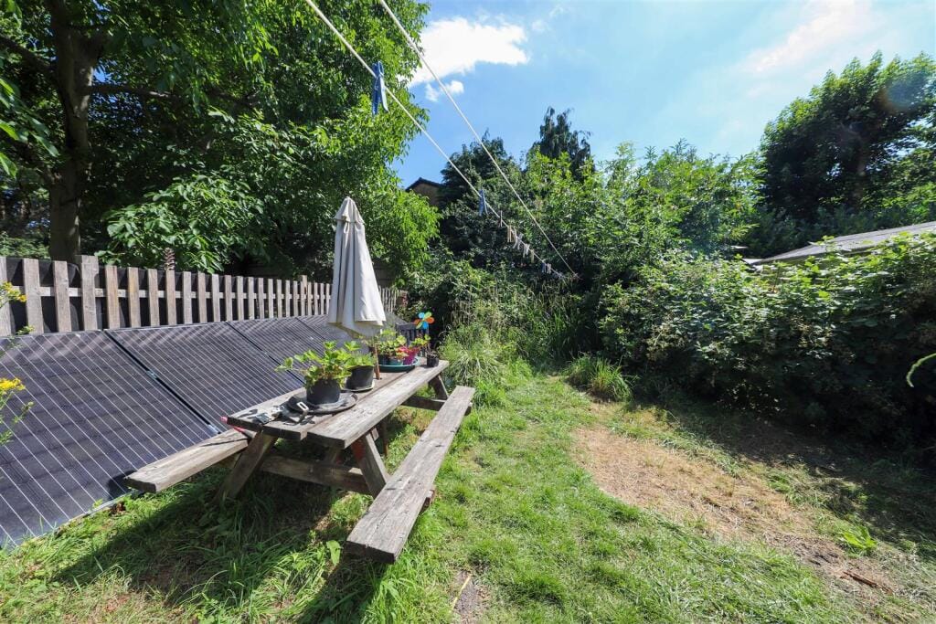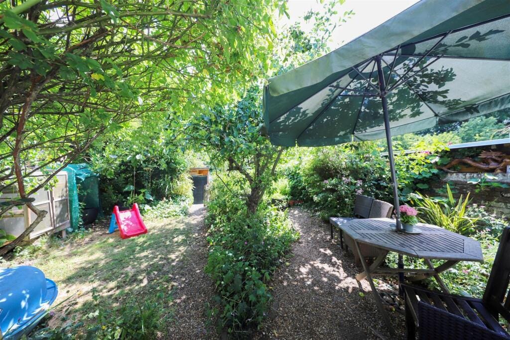 The private rear garden offers the perfect escape from the stresses of everyday life. It's a haven for nature lovers, offering an abundance of wildlife and birdsong. It is bursting with greenery, with a peaceful pond, and many mature fruit trees, including cherries, apples, grapes, pears, figs, plums, and more.