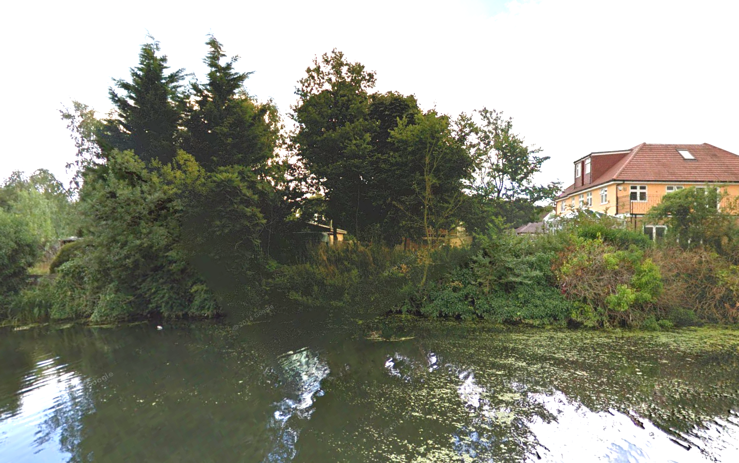 - Canal aspect: This backs directly onto the offside bank of the Grand Union Canal. The garden is quite large and the agent says there is a summer house overlooking the canal. It looks as if it might be challenging but possible to engineer a mooring here - I would definitely look into it if I were considering this area and had the funds to explore this option. There is a lock nearby but the canal looks wide enough for moored boats not to cause an obstruction, however there doesn't seem to be any precedent. The property is probably in the centre of the Streetview screen shot below, but it's hard to judge.