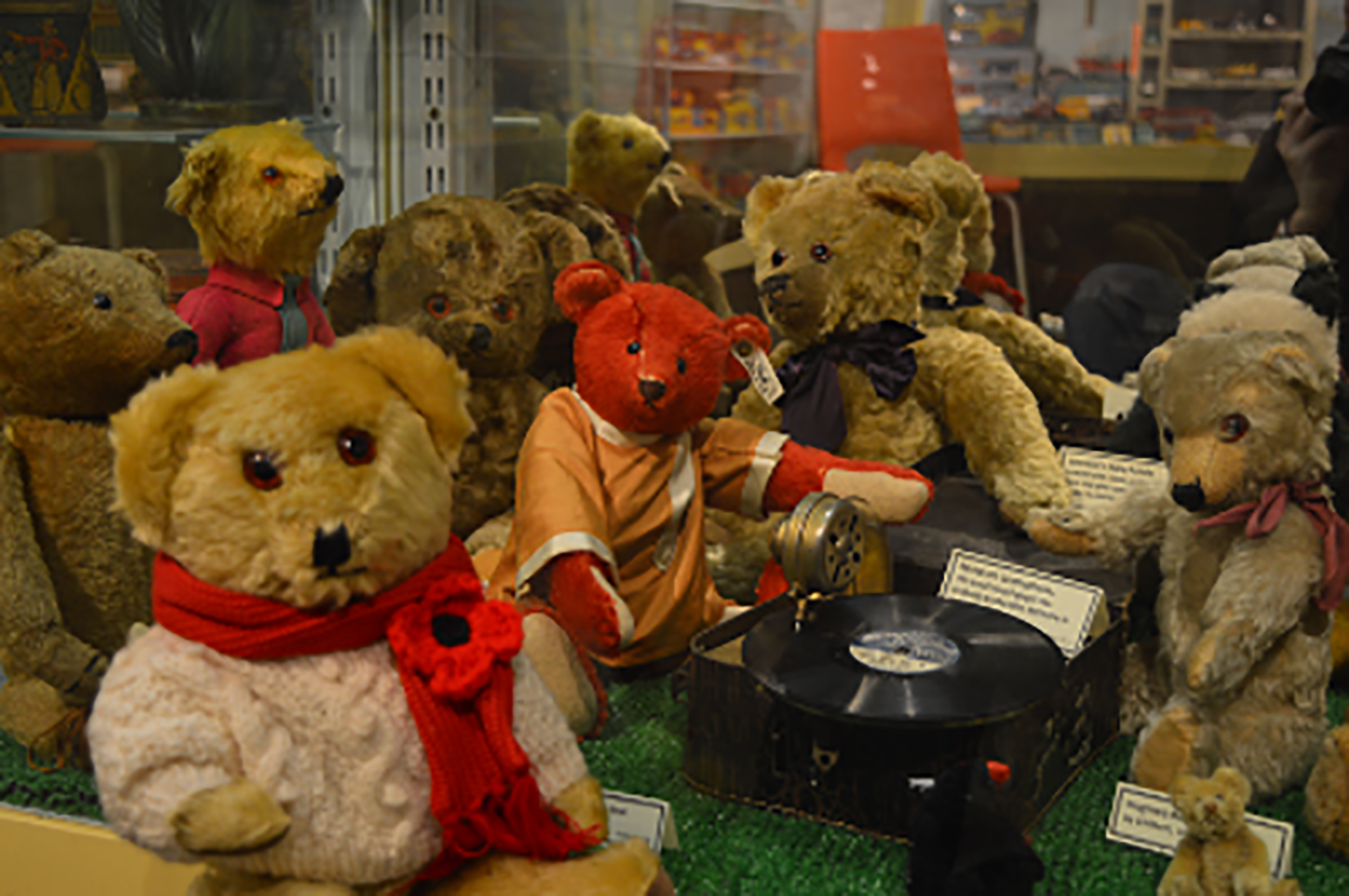 Soon we were joined by more bears, Calley, Molly, and Daisy, all of whom made friends with my childhood bear, Tessy. Calley was a miniature bear who looked rather similar to the famous WW1 pocket bears. We even found a book called “A Bear in War”, featuring a bear who looked exactly like him.